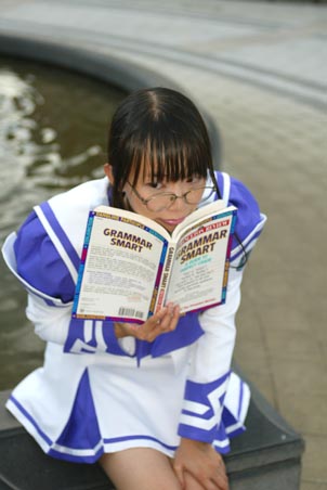 |  | ロケでsivaさんに撮って頂いた写真です。優等生は 勉強が命ですね(笑)。ちなみにこの本は中学の時 の教科書ですが、あまり使ってないようなピカピカで す。そう、あまり勉強してなかったので(笑)。 2002年8月17日横浜 |