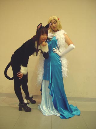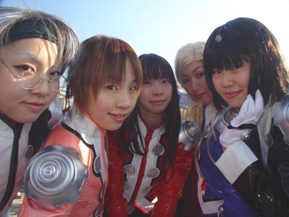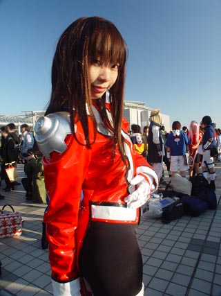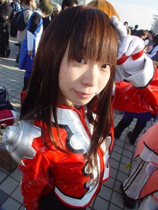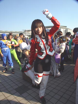 戦闘服のエリカです。服はPVCなのでなかなか動きが取れ ません。でもPVCだと皺なりませんし、冬も暖かいので結構 好きです。肩のコネクターは知人がキャストで作りました。 感謝しますv 2002年冬コミ3日目。 |
